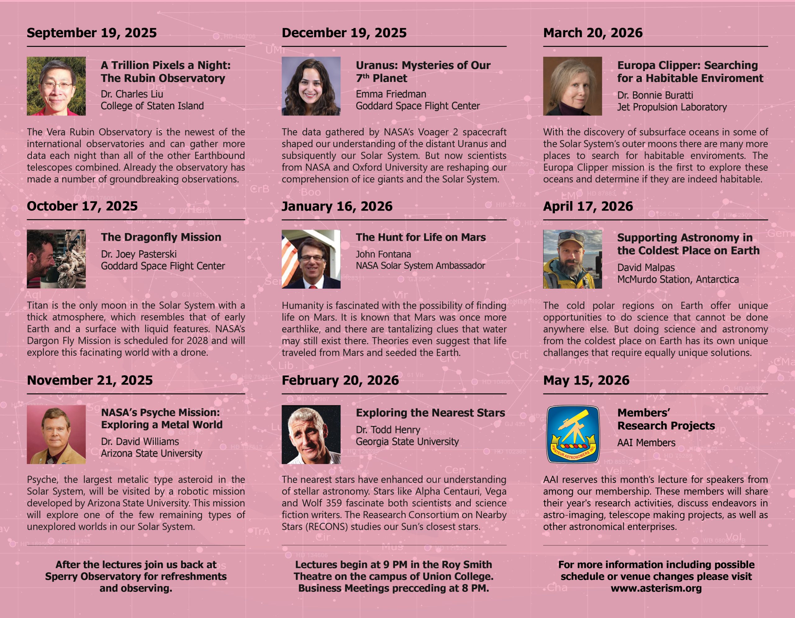 And learn about Amateur Astronomers, Inc. the Astronomy club that makes its home at Sperry Observatory located on the campus of Union College in Cranford, NJ and how you can join. And, weather permitting, we will do observing through our 2 large telescopes, a 24 inch reflector and a 10 inch refractor.